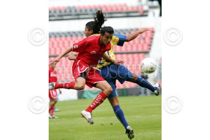 México, D.F. 30 MAYO 2004.- Cuauhtémoc Blanco, delantero del Ámerica y el portero del Toluca Hernan Cristante sufrieron un encontronazo en el primer tiempo del partido. FOTO: Sandra Perdomo/CUARTOSCURO.COM