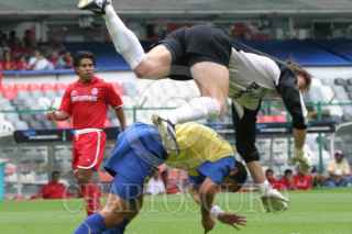 México, D.F. 30 MAYO 2004.- Cuauhtémoc Blanco, delantero del Ámerica y el portero del Toluca Hernan Cristante sufrieron un encontronazo en el primer tiempo del partido. FOTO: Sandra Perdomo/CUARTOSCURO.COM