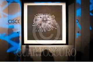 CIUDAD DE MÉXICO, 18JULIO2017.- El artista Francisco Toledo intervino con la obra "Estera de Serpientes" la edición de portada de la revista Los 300 Líderes más Influyentes de México. Durante un video que pasaron en la presentación de la portada, el artista oaxaqueño invitó a las personas influyentes de México a buscar una causa por el país y a no tener intereses que afecten a la población. FOTO: DIEGO SIMÓN SÁNCHEZ /CUARTOSCURO.COM