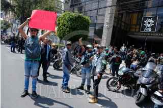 CIUDAD DE MÉXICO, 20JULIO2017.- Un grupo de aproximadamente 100 motociclistas se manifestaron a las afueras de la sede nacional del PRD y pidIeron a la dirigencia su intervención y apoyo para que no se aplique la verificación ambiental en motocicletas. FOTO: RODOLFO ANGULO /CUARTOSCURO.COM