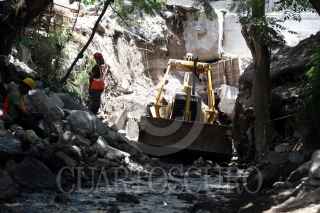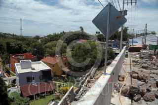 CUERNAVACA, MORELOS, 20JULIO2017.- Varias casas han sido afectadas en el kilómetro 93 del Paso Exprés, donde se observa que el muro sur de esta vialidad se está separando. El pasado 12 de julio un socavón se abrió en este sitio, cayendo un auto con dos hombres que murieron horas después por asfixia. FOTO: MARGARITO PÉREZ RETANA /CUARTOSCURO.COM