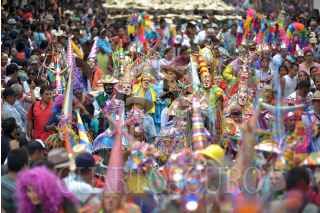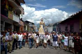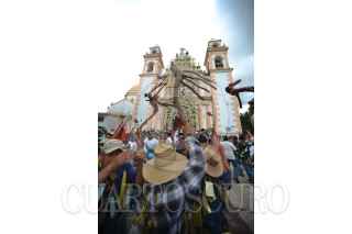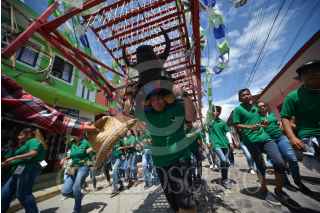 XICO, VERACRUZ, 21JULIO2017- Como parte de los festejos a “Santa María Magdalena” los pobladores celebraron la subida del arco a la capilla principal del pueblo mágico. Varias caravanas de toritos pirotécnicos acompañaron el desfile, es espera de ser quemados por la noche, para el gocé de los presentes. FOTO: ALBERTO ROA /CUARTOSCURO.COM