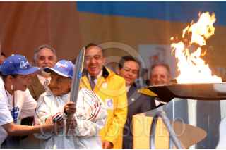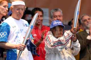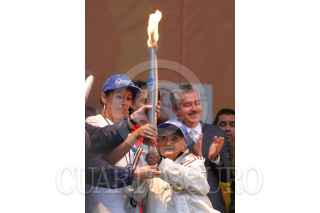 México, D.F., 15JUNIO2004.- Rosario Iglesias mejor conocida como "Doña Chayito", fue la última en portar la flama olímpica durante su recorrido por la Ciudad de México. FOTO: Moisés Pablo/CUARTOSCURO.COM