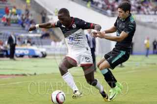 PUEBLA, PUEBLA., 22JULIO2017.- Los jugadores Luis Advincula y Walter Sandoval disputan el balón durante jugada durante partido ante Santos Laguna correspondiente a la jornada 1 del torneo de apertura de la Liga MX del fútbol mexicano con marcador final 2-2. FOTO: HILDA RÃOS/ CUARTOSCURO.COM