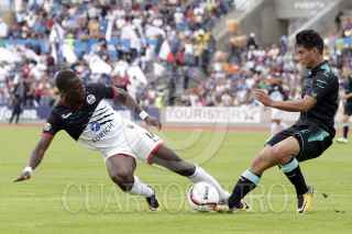 PUEBLA, PUEBLA., 22JULIO2017.- Los jugadores Luis Advincula y Walter Sandoval disputan el balón durante jugada durante partido ante Santos Laguna correspondiente a la jornada 1 del torneo de apertura de la Liga MX del fútbol mexicano con marcador final 2-2. FOTO: HILDA RÃOS/ CUARTOSCURO.COM