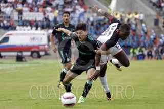 PUEBLA, PUEBLA., 22JULIO2017.- Los jugadores Luis Advincula y Walter Sandoval disputan el balón durante jugada durante partido ante Santos Laguna correspondiente a la jornada 1 del torneo de apertura de la Liga MX del fútbol mexicano con marcador final 2-2. FOTO: HILDA RÃOS/ CUARTOSCURO.COM