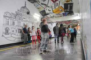 CIUDAD DE MÉXICO, 23JULIO2017.- En el transborde del Metro Zapata se exhibe el trabajo de diferentes caricaturistas mexicanos, lo cual es disfrutado por los miles de usuarios diarios de este transporte. FOTO: ISAAC ESQUIVEL /CUARTOSCURO.COM