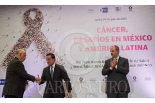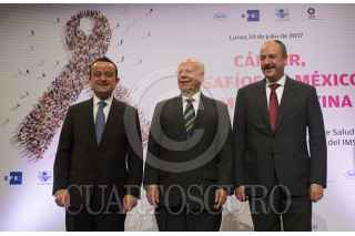 CIUDAD DE MÉXICO, 24JULIO2017.- Mikel Arreola, Director General del Instituto Mexicano del Seguro Social (IMSS) , José Narro Robles, Secretario de Salud y Juan Francisco Ealy Lanz Duret, Director General del periódico El Universal, inauguraron el foro: "Cáncer, desafíos en México y America Latina" en el Auditorio 2 del Centro Médico Nacional del Siglo XXI. De los temas principales, se mencionó que el cáncer es la tercera causa de muerte en el país. Además de que en México se detectan más de un millón de casos nuevos de cáncer al año, mientras que en América Latina cerca de 190 mil casos nuevos al año. FOTO: MARTHA ESQUIVEL /CUARTOSCURO.COM