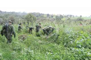 HUEYOTIPLAN, TLAXCALA, 25JULIO2017.- Elementos de la SEDENA perteneciente a la 23 Zona Militar con sede en Panotla, Tlaxcala, ubicaron y destruyeron este martes un plantío de amapola en el municipio de Santa Cruz Tenancingo, del municipio de Hueyotlipan. Dicho plantio es el primer plantío de esta naturaleza que se ubica en la entidad tlaxcalteca. El sembradío abarcaba una superficie de entre mil 600 y mil 800 metros. FOTO: JORGE LEZAMA /CUARTOSCURO.COM