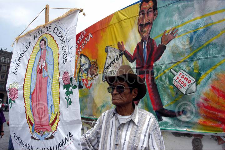 MEXDF 16JUNIO2004.- Integrantes de la Asamblea de Exbraceros del D.F. se manifestarón frente a palacio nacional, le recuerdan al presidente Vicente Fox, que les prometio atender a sus demandas en 40 dias. FOTO: Germán Romero/CUARTOSCURO.COM