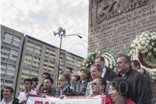 CIUDAD DE MÉXICO, 26JULIO2017.- La maestra Delfina Gómez, ex candidata a la gubernatura de Estado de México por Morena, y el político Gerardo Fernández Noroña, encabezaron la colación de una ofrenda en el Monumento a las víctimas de la Matanza de Tlatelolco del 2 de octubre de 1968, ubicado en la Plaza de las Tres Culturas, en el marco de las actividades que comprenden la Marcha por la Esperanza. FOTO: MARIO JASSO /CUARTOSCURO.COM
