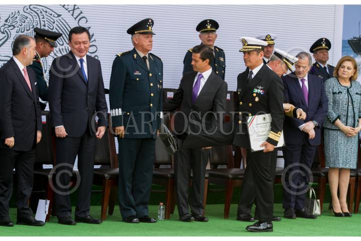 CIUDAD DE MÉXICO, 26JULIO2017.- Vidal Francisco Soberón Sanz, secretario de la Marina, y Salvador Cienfuegos, secretario de la Defensa, al terminar la ceremonia de entrega de menciones honoríficas y reconocimiento a unidades y persona del Ejército, Armada y Fuerza Aérea, en la explanada del Campo Militar no. 1-A. FOTO: MOISÉS PABLO /CUARTOSCURO.COM