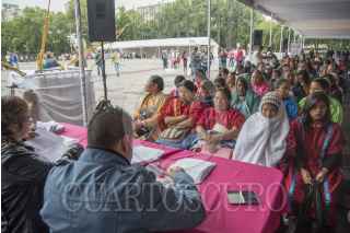 CIUDAD DE MÉXICO, 26JULIO2017.- Personas de comunidades indígenas recibieron esta mañana un seguro de desempleo proporcionado por el Gobierno de la Ciudad de México, en el Marco del Convenio de Colaboración firmado entre las Secretarías de Trabajo y Fomento al Empleo (STyFE), y la de Desarrollo Rural y Equidad para las Comunidades de la CDMX (Sederec). Las titulares de las dependencias entregaron apoyos en la Plaza de las Tres Culturas a 833 personas indígenas, de las cuales 282 son hombres, y 551 mujeres. FOTO: MARIO JASSO /CUARTOSCURO.COM