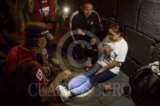 CIUDAD DE MÉXICO, 26JULIO2017.- Una de las jóvenes integrante del Movimiento de Aspirantes Excluidos de la Educación Superior, resultó afectada en sus vías respiratorias debido al polvo de extingidores que utilizaron los granaderos para sofocar las antorchas que llevaban los manifestantes. FOTO: TERCERO DÍAZ /CUARTOSCURO.COM