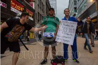 CIUDAD DE MÉXICO, 26JULIO2017.- El joven Yazar Prieto Herrera es un clasíficado para el Mundial de Judo Sub 18, que se llevará a cabo en Chile del 9 al 13 de agosto, sin embargo como no cuenta con los recursos necesarios para asistir, él y un amigo piden dinero sobre la calle peatonal Madero en el Centro Histórico. Su correo personal para cualquier informe o apoyo es yazya2714@hotmail.com. FOTO: TERCERO DÍAZ /CUARTOSCURO.COM