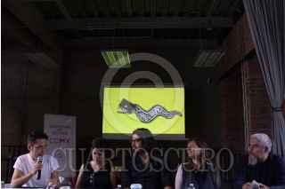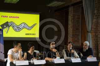 CIUDAD DE MÉXICO, 27JULIO2017.- Israel Martínez, integrante de Sonido Gallo Negro, Liset Cotera, Directora del Festival La Matatena, Manuel Trujillo, Director de El Faro de Aragón, Clarisa Moura, Directora de Galería Vértigo y Jorge Aldrete, Artista Visual, presentaron las actividades que se llevarán a cabo en el Primer Aniversario del Centro Cultural El Rule, el cual será durante el mes de agosto, donde el público podrá disfrutar de diversas actividades desde artes plásticas, música, literatura, hasta proyecciones audiovisuales. FOTO: MARTHA ESQUIVEL /CUARTOSCURO.COM