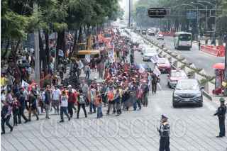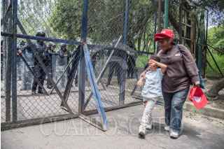 CIUDAD DE MÉXICO, 27JULIO2017.- La maestra Delfina Gómez, ex candidata a la gubernatura de Estado de México por Morena, el senador Miguel Barbosa, y los políticos Martin Barthes Guadrarrama y Horacio Duarte, encabezaron por quinto día consecutivo la "Marcha por la Esperanza" para exigir se transparente los resultados de la elección electoral del Estado de México. La marcha partió de la Cámara de Senadores hasta los Pinos, en donde elementos de Seguridad Pública les impidieron el acceso sobre Calzada Chivatito. En la imagen una niña asustada pasa cerca de la valla de Policía. FOTO: MARIO JASSO /CUARTOSCURO.COM