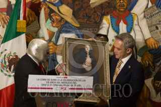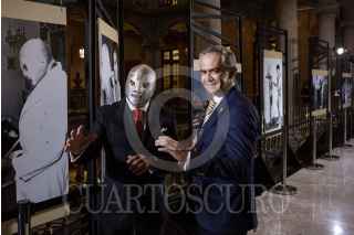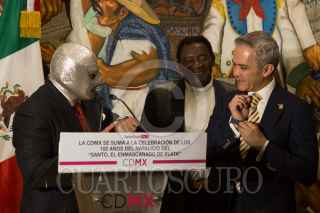CIUDAD DE MÉXICO, 27JULIO2017.- El Hijo del Santo, Miguel Ángel Mancera Espinosa, y jefe de gobierno, durante un acto protocolario de celebración de los 100 años del natalicio de "Santo, el enmascarado de plata". El luchador obsequió al jefe de gobierno un cuadro de la leyenda El Santo. FOTO: TERCERO DÍAZ /CUARTOSCURO.COM