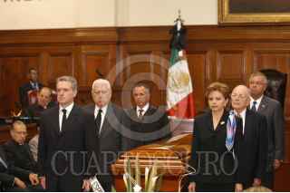 México, D. F. 17 Junio 2004.- Los magistrados Génaro Gongora Pimentel, Guillermo Ortíz Magallanes, Beatriz Luna Ramos y Sergio Agurre Anguano montaron una guardia en honor de Humberto Román Palacios, quien falleció el día de ayer. En la Suprema Corte de Justicia de la Nación le rindieron un homenaje. FOTO: Nelly Salas/CUARTOSCURO.COM