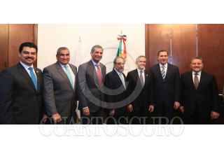 CIUDAD DE MÉXICO, 28JULIO2017.- Enrique Ochoa reza, acompañado de Luis Castro Obregón, Arturo Zamora, Miguel Ángel Mancera y Rafael Moreno Valle asistieron al Primer Seminario Internacional “Para Repensar el Futuro ante el Reto de la Era Trump” organizado por Nueva Alianza. FOTO: CUARTOSCURO.COM