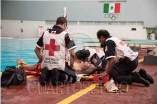 CIUDAD DE MÉXICO, 29JULIO2017.- Especialistas del área de Rescate Acuático de la Cruz Roja Mexicana, llevaron a cabo un simulacro en la alberca del Comité Olímpico Mexicano para prevenir accidentes de ahogamiento por sumersión, en donde se realizaron diversas técnicas para rescatar a una persona por situaciones de cansancio, pánico o traumatismo. Además se invitó a la población a tomar medidas de seguridad en albercas, presas, mares y lagos durante este periodo vacacional, ya que de acuerdo a las estadísticas de la Organización Mundial de la Salud, los accidentes por ahogamiento incrementan de un 15 a 20 por cierto durante dicho periodo. FOTO: MARIO JASSO /CUARTOSCURO.COM