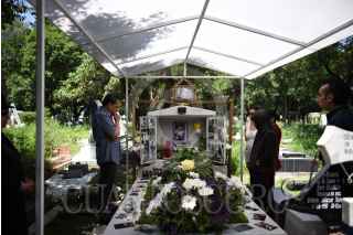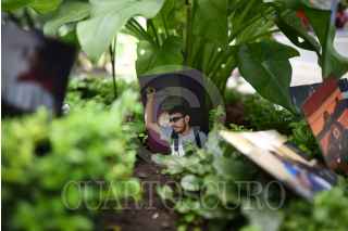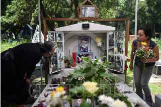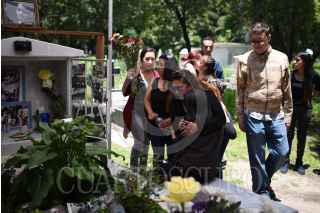 CIUDAD DE MÉXICO, 29JULIO2017.- Un pequeño acto religioso se llevó a cabo en el Panteón Dolores de la Ciudad de México, lugar donde descansan los restos del fotoperiodista Rubén Espinosa Becerril. Este 31 de Julio se cumplirá el segundo aniversario luctuoso, es por eso que familiares y amigos asistieron y decoraron su tumba con fotografías y flores. FOTO: FÉLIX MÁRQUEZ / CUARTOSCURO.COM