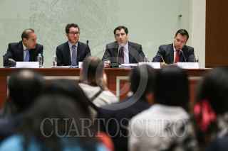 CIUDAD DE MÉXICO, 31JULIO2017.- José Luis Ruíz Zárate, director de Comunicación Social, Juan Rebolledo Márquez Padilla, titular de la Unidad de Política de Ingresos Tributarios, Luis Madrazo Lajous, titular de la Unidad de Planeación Económica y Alfonso Isaac Gamboa Lozano, de la Unidad de Política y Control Presupuestal, durante la presentación del Informe Trimestral de la Secretaria de Hacienda y Crédito Público sobre el estado que guardan las finanzas y deuda pública hasta junio de 2017. FOTO: ADOLFO VLADIMIR /CUARTOSCURO.COM
