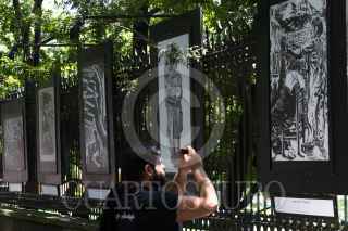 CIUDAD DE MÉXICO, 31JULIO2017.- Se montó una exposición de grabado por los 80 años de creación del Taller de Gráfica Popular, en la Galería Abierta de las Rejas de Chapultepec. FOTO: MOISÉS PABLO /CUARTOSCURO.COM