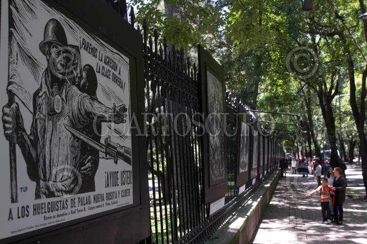 CIUDAD DE MÉXICO, 31JULIO2017.- Se montó una exposición de grabado por los 80 años de creación del Taller de Gráfica Popular, en la Galería Abierta de las Rejas de Chapultepec. FOTO: MOISÉS PABLO /CUARTOSCURO.COM