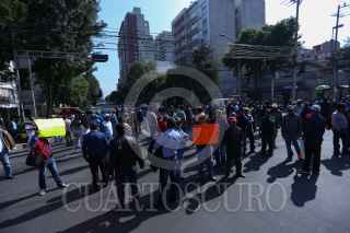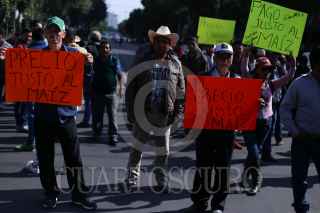 CIUDAD DE MÉXICO, 01AGOSTO2017.- Con la consigna "Sin maiz no hay país", campesinos de 17 estados del país, entre ellos Sinaloa, Veracruz, Estado de México, Chihuahua, bloquearon la avenida Cuauhtémoc a la altura de la Secretaría de Agricultura, Ganadería, Desarrollo Rural, Pesca y Alimentación, para exigir que el titular de la dependencia José Calzada cumpla con el compromiso que hicieron con los productores de maíz y pagar por tonelada $4,300. Los productores informaron que el precio del "maíz blanco" mexicano se ha depreciado por la introducción al mercado del "maíz amarillo" estadounidense, por ello, los gastos de producción son más que la ganacia. FOTO: ADOLFO VLADIMIR /CUARTOSCURO.COM