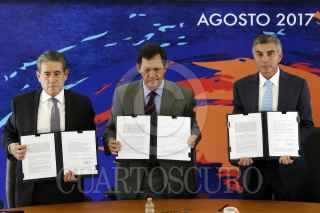 PUEBLA, PUEBLA; 02AGOSTO2017.- El gobernador de Puebla; Antonio Gali y Roberto Campa; Subsecretario de Derechos Humanos, encabezaron la firma de convenio e instalación de la Comisión de Protección a Defensores de Derechos Humanos y Periodistas. FOTO: HILDA RÍOS/ CUARTOSCURO.COM