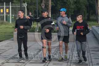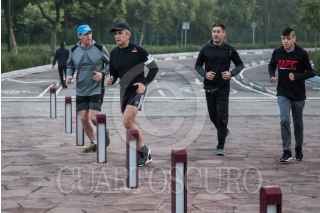 CIUDAD DE MÉXICO, 02AGOSTO2017.- Horacio de la Vega, titular del Instituto del Deporte, Miguel Ángel Mancera Espinosa, jefe de gobierno, Mario Delgado, presidente de la Federación de Jiu-jitsu, y Brandon Moreno, peleador de la UFC, durante su activación física en el Bosque de Chapultepec esta mañana. FOTO: TERCERO DÍAZ /CUARTOSCURO.COM