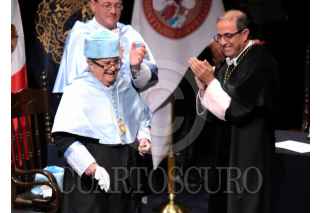 CIUDAD DE MÉXICO, 02AGOSTO2017.- En solemne ceremonia de investidura, EL Dr. Miguel León Portilla, escritor e historiador mexicano, recibe el reconocimiento "Doctor Honoris Causa" por parte de la Universidad de Sevilla a cargo del Dr. Miguel Ángel Castro Arrollo, Rector Magnífico de la Universidad de Sevilla. FOTO: ADOLFO VLADIMIR / CUARTOSCURO.COM