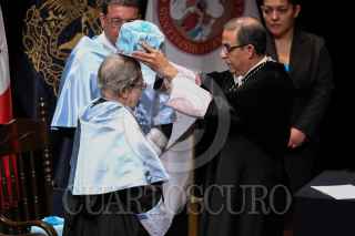 CIUDAD DE MÉXICO, 02AGOSTO2017.- En solemne ceremonia de investidura, EL Dr. Miguel León Portilla, escritor e historiador mexicano, recibe el reconocimiento "Doctor Honoris Causa" por parte de la Universidad de Sevilla a cargo del Dr. Miguel Ángel Castro Arrollo, Rector Magnífico de la Universidad de Sevilla en compañía de Enrique Graue Wiechers, Rector de la Universidad Nacional Autónoma de México. FOTO: ADOLFO VLADIMIR / CUARTOSCURO.COM