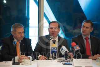 CIUDAD DE MÉXICO, 03AGOSTO2017.- Julio Sánchez y Tépoz, comisionado Federal para la Protección contra Riesgos Sanitarios (COFEPRIS); Ángel Bosch, presidente de Premios Áspid de Publicidad Iberoamericana de Salud y Farmacia, y Carlos Escalante, presidente de la Asociación Mexicana de Agencias de Publicidad y Comunicación Farmacéutica (AMAPF), presentaron la plataforma “COFEPRIS Informa”, la cual establecerá comunicación directa con más de 192 mil médicos y profesionales de la salud a nivel nacional mediante el envío de información periódica sobre medicamentos, alertas sanitarias, suplementos alimenticios y servicios de salud. FOTO: MARIO JASSO /CUARTOSCURO.COM
