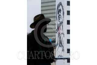 CIUDAD DE MÉXICO, 05AGOSTO2017.- Una persona escucha los discursos durante el Primer Congreso Galileo "Construyendo el Frente Amplio", realizado en el Centro de la siudad, donde se han realizado diversos graffitis como atracción turística. FOTO: ISAAC ESQUIVEL /CUARTOSCURO.COM