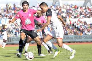 PUEBLA, PUEBLA; 05AGOSTO2017.- Los jugadores Heriberto Olvera y Omar González durante jugada del partido entre Lobos BUAP y los Tuzos del Pachuca con marcador final 3-1 correspondiente a la jornada 3 del torneo de Apertura 2017 de la Liga MX celebrado en el estadio Universitario de la BUAP. FOTO: HILDA RÍOS/ CUARTOSCURO.COM