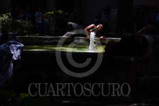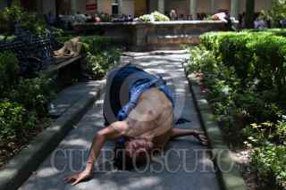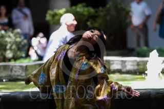 CIUDAD DE MÉXICO, 06AGOSTO2017.- Alumnos de la maestra Akiko Irene Lida realizaron una demostración artística en Pro de la Paz, para conmemorar la bomba atómica en Hiroshima (el 6 de agosto de 1945, en Nagazaki fue el día 9), a través de una interpretación extrasensorial los artistas buscaron transmitir a la gente que observó esta ejecución, realizada en el patio del Museo Fran Mayer, el dolor que se vivió aquella tarde de verano cuando impacto una de las armas más mortales construidas por el hombre. FOTO: MOISÉS PABLO /CUARTOSCURO.COM