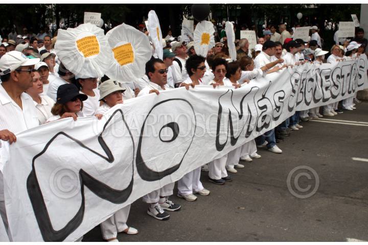 México, D.F., 27JUNIO2004.- Florinda Meza, actriz y Roberto Gómez Bolaños, actor, tomaron parte en la marcha contra de la delicuencia, que partio del Angel de la Independencia al Zócalo. FOTO: Moisés Pablo/CUARTOSCURO.COM