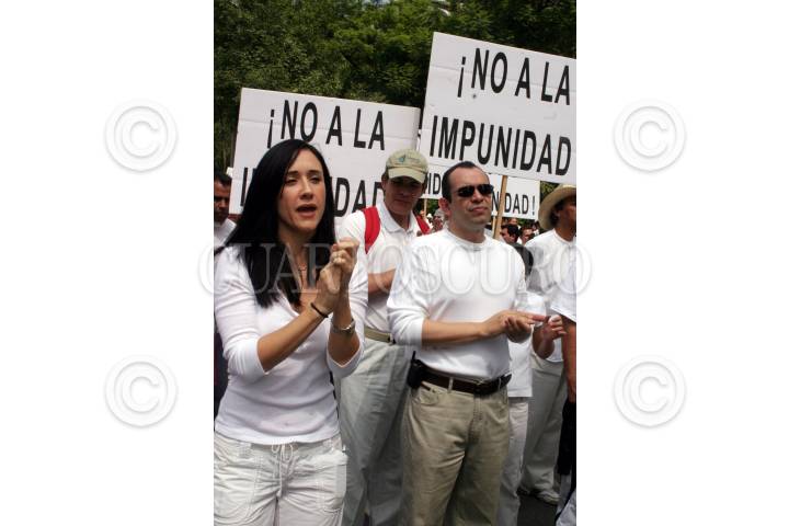 México, D.F., 27JUNIO2004.- Florinda Meza, actriz y Roberto Gómez Bolaños, actor, tomaron parte en la marcha contra de la delicuencia, que partio del Angel de la Independencia al Zócalo. FOTO: Moisés Pablo/CUARTOSCURO.COM