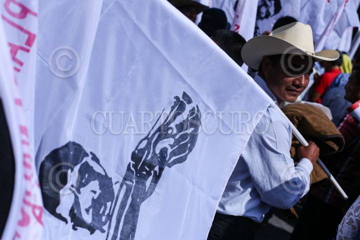 CIUDAD DE MÉXICO, 07AGOSTO2017.- Organizaciones campesinas y sociales aglutinadas en la Coordinadora Nacional Plan de Ayala (CNPA), marcharon del Ángel de la Independencia a la Secretaría de Gobernación en conmemoración al natalicio de Emiliano Zapata y para exigir el gobierno federal cumpla con los compromisos adquiridos con las comunidades campesinas. En la imagen, José Narro Cespedes, dirigente de la organización previo a su ingreso a la secretaría. FOTO: ADOLFO VLADIMIR /CUARTOSCURO.COM