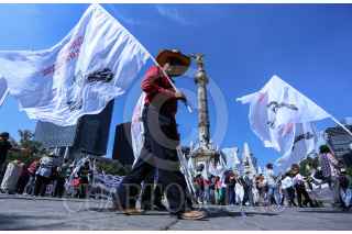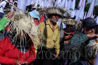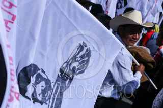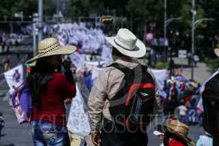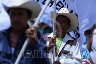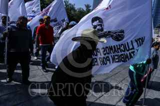CIUDAD DE MÉXICO, 07AGOSTO2017.- Organizaciones campesinas y sociales aglutinadas en la Coordinadora Nacional Plan de Ayala (CNPA), marcharon del Ángel de la Independencia a la Secretaría de Gobernación en conmemoración al natalicio de Emiliano Zapata y para exigir el gobierno federal cumpla con los compromisos adquiridos con las comunidades campesinas. En la imagen, José Narro Cespedes, dirigente de la organización previo a su ingreso a la secretaría. FOTO: ADOLFO VLADIMIR /CUARTOSCURO.COM