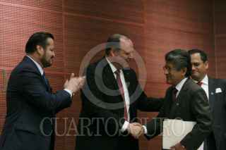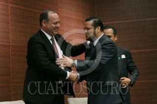 CIUDAD DE MÉXICO, 08AGOSTO2017.- El senador Fernando Herrera; el presidente de la Coparmex Gustavo de Hoyos Walther, y el diputado Francisco Martínez Nery, participaron en el "Foro Consejo Fiscal Mexicano: Mitos y Realidades", en el Senado de la República. FOTO: MOISÉS PABLO /CUARTOSCURO.COM