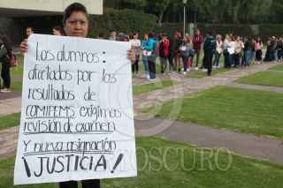 CIUDAD DE MÉXICO, 08AGOSTO2017.- Padres de familia acompañados de sus hijos estudiantes que quedaron fuera de la educación media superior, asistieron esta mañana a Ciudad Universitaria para manifestarse en contra del error en la calificación del examen de admisión al bachillerato, donde excluyeron a más de 11 mil alumnos. FOTO: TERCERO DÍAZ /CUARTOSCURO.COM