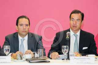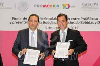 CIUDAD DE MÉXICO, 08AGOSTO2017.- Alejandro Vázquez, director general Agencia de Servicios a la Comercialización y Desarrollo de Mercados Agropecuarios (ASERCA), y Paulo Carreño King, director general de ProMéxico, durante la firma de convenio, así como la presentación de la “Rueda de Negocios de Bebidas y Destilados 2017”. FOTO: GALO CAÑAS /CUARTOSCURO.COM