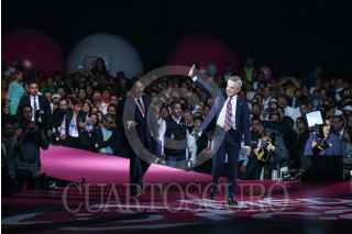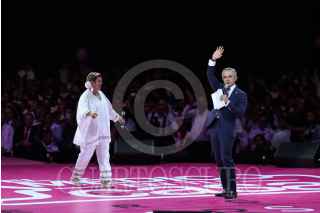 CIUDAD DE MÉXICO, 08AGOSTO2017.- Miguel Ángel Mancera, jefe de gobierno de la Ciudad de México y Armando Abued, secretario de Salud, durante el tercer aniversario del programa "Médico en tu casa". "Margarita, la diosa de la cumbia" amenizó el evento realizado en el Palacio de los Deportes. FOTO: ADOLFO VLADIMIR /CUARTOSCURO.COM