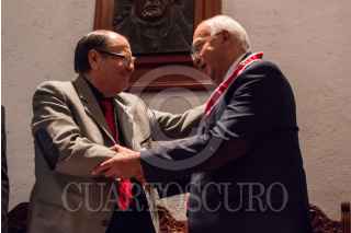 CIUDAD DE MÉXICO, 08AGOSTO2017.- Raúl Gómez, presidente del Instituto Mexicano de Ciencias y Humanidades, entregó una medalla a Mauro Jiménez Lazcano, durante la ceremonia donde fue aceptado como Miembro Activo de dicho Instituto. FOTO: TERCERO DÍAZ /CUARTOSCURO.COM