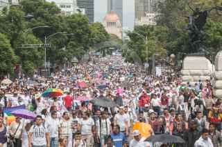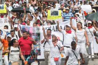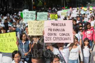 CIUDAD DE MÉXICO, 09AGOSTO2017.- Granaderos resguardaron las calles de la cudad cercanas al Zócalo debido a una marcha que realizaron miles de comerciantes para protestar en contra del retiro de puestos semifijos por parte de las autoridades capitalinas. FOTO: TERCERO DÍAZ /CUARTOSCURO.COM