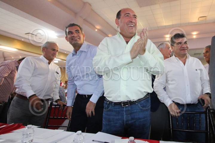 SALTILLO, COAHUILA, 09AGOSTO2017.- Enrique Ochoa Reza, dirigente nacional del PRI; Rubén Moreira, gobernador del estado; y Miguel Riquelme, gobernador electo de Coahuila, durante la mesa nacional temática "Declaración de Principios", a la víspera de la celebración de su Asamblea Nacional Ordinaria. FOTO: VENUSTIANO MADERO /CUARTOSCURO.COM