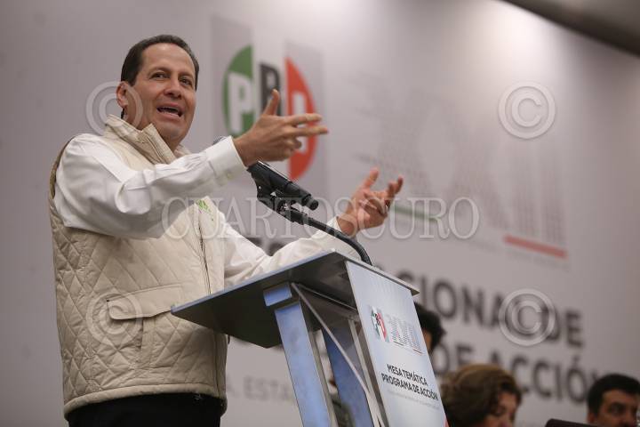 TOLUCA, ESTADO DE MÉXICO, 10AGOSTO2017.- Enrique Ochoa Reza, dirigente nacional del PRI, y Eruviel Ávila, gobernador de la entidad, durante el segundo día de trabajo de la mesa “Programa de Acción” rumbo a la XXII Asamblea Nacional Ordinaria del PRI. FOTO: ARTEMIO GUERRA BAZ /CUARTOSCURO.COM